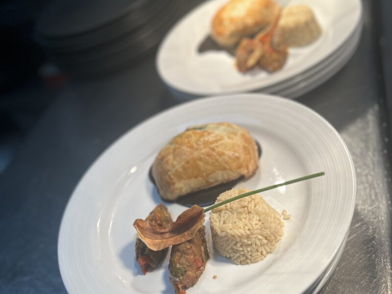 Scallops in puff pastry/ spinach/ beurre blanc sauce
